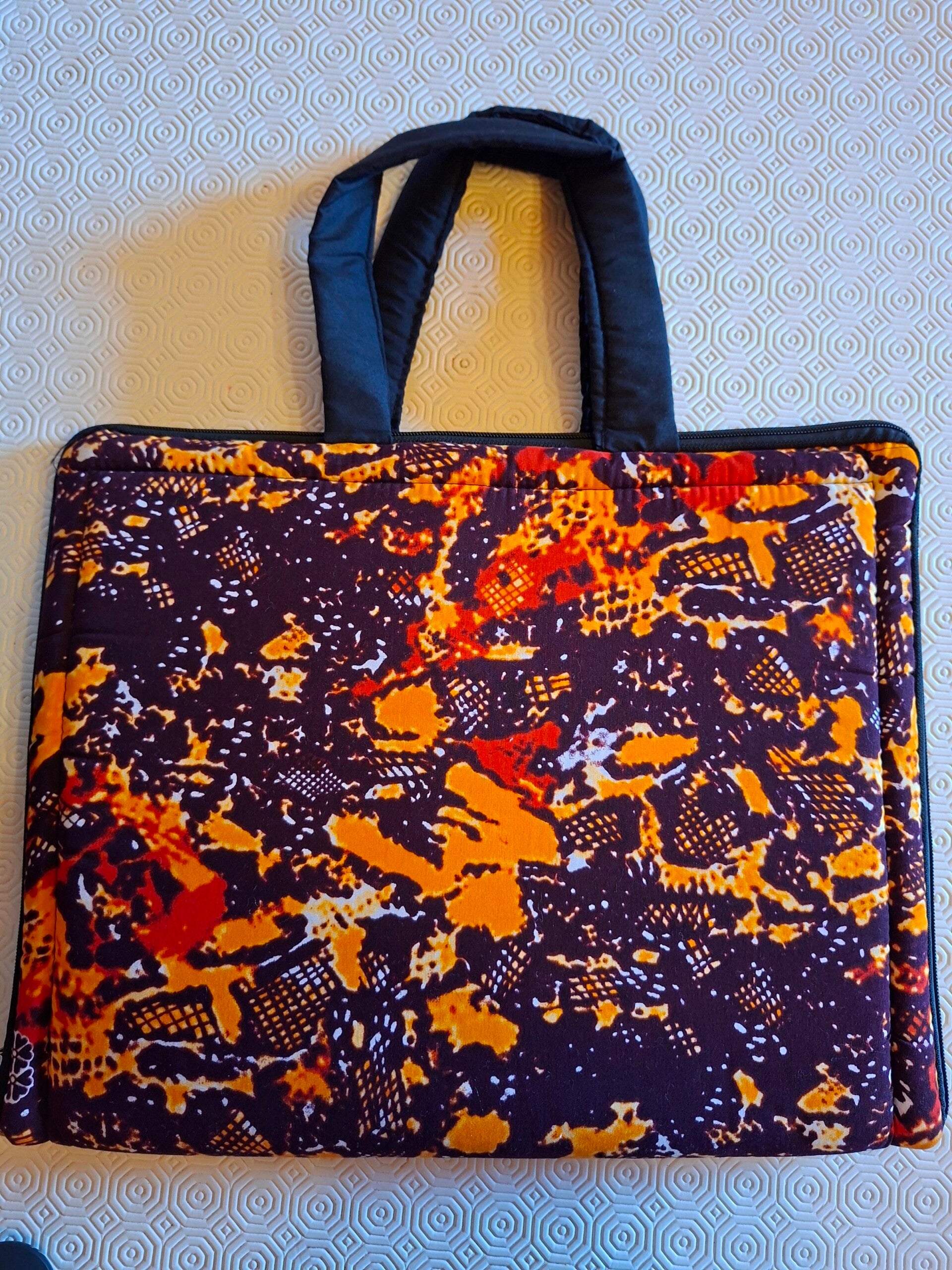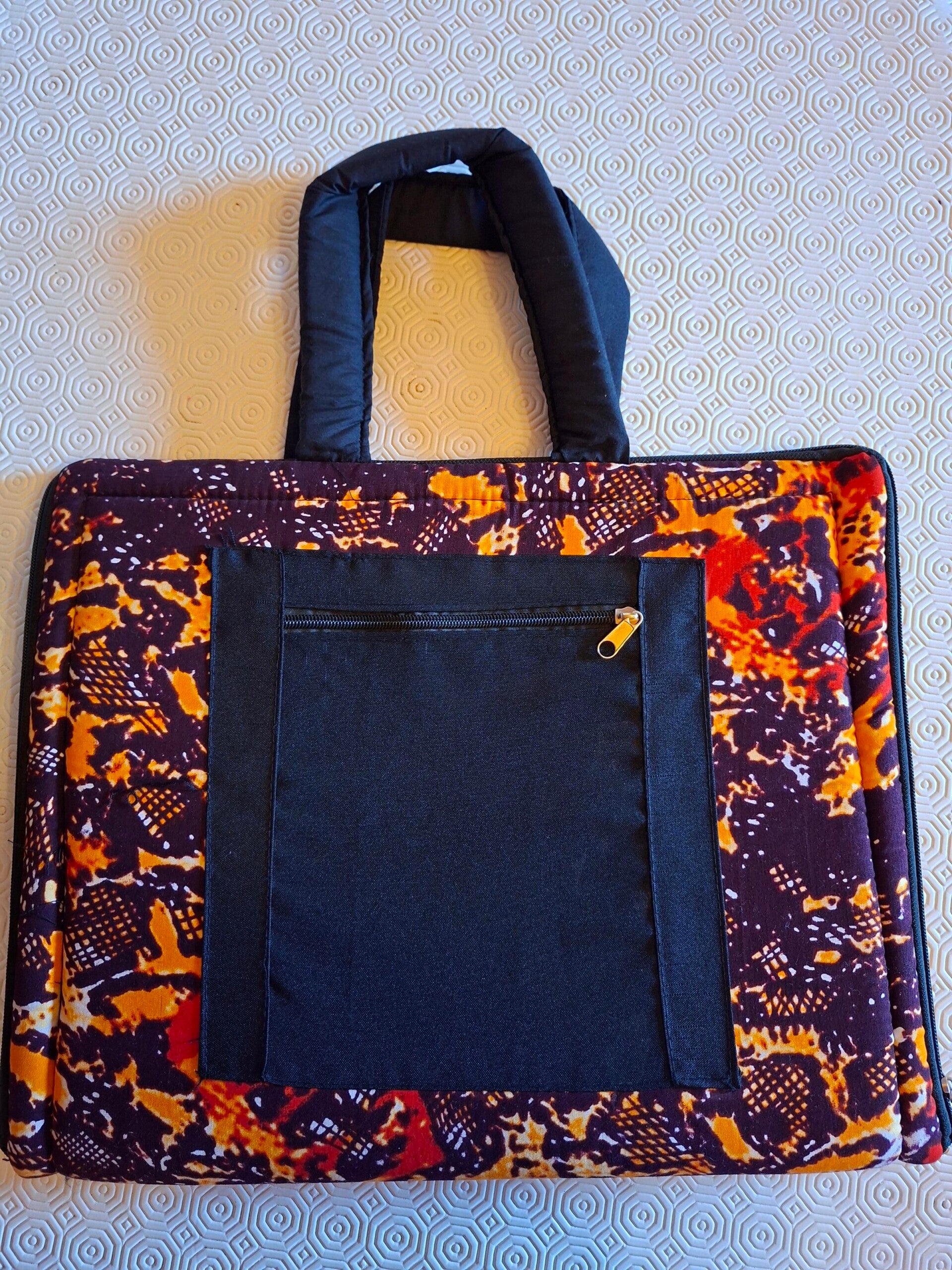 Unique design from Uganda. Fits standard and larger laptops with zip at front for all your accessories